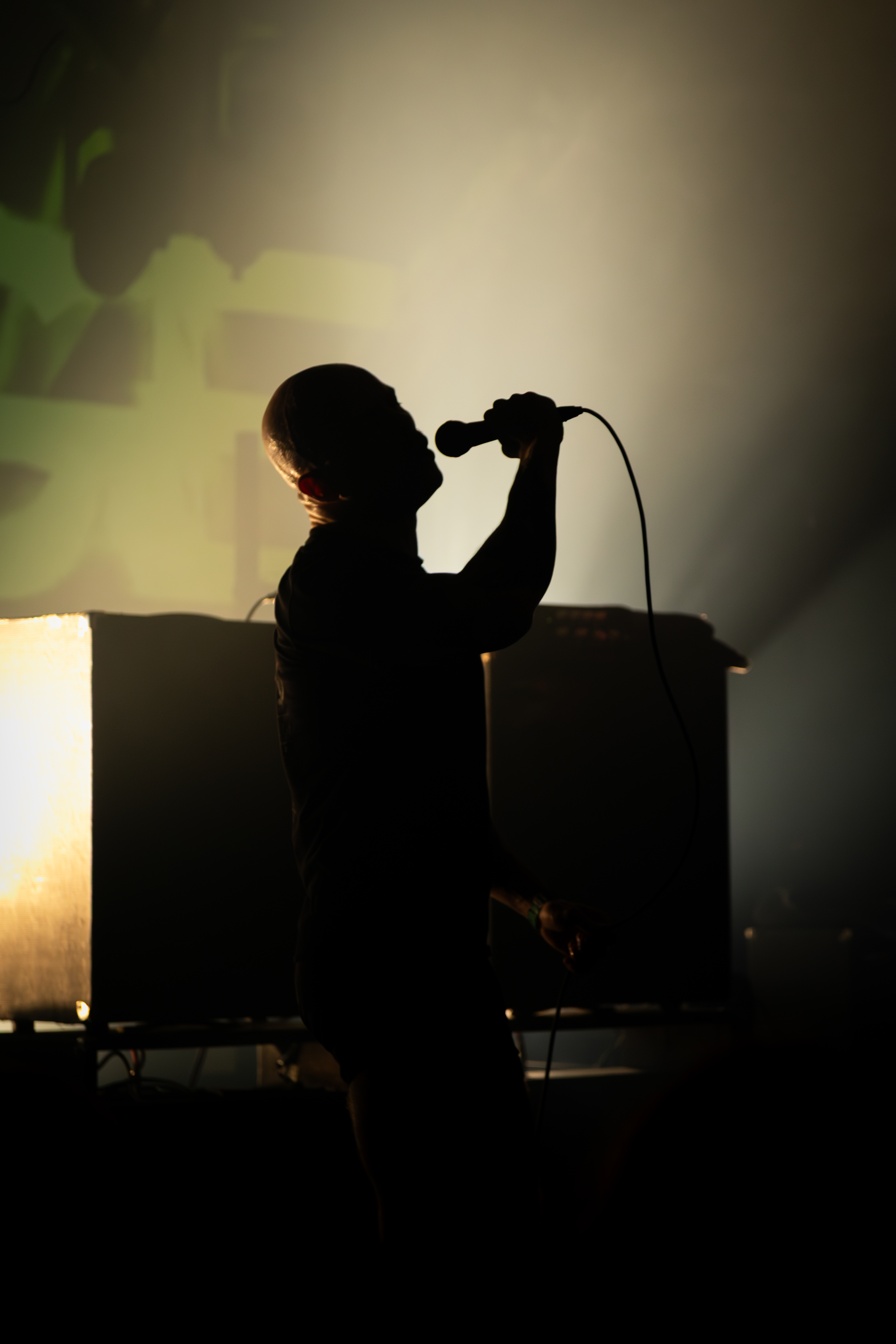 Fange a toujours ces atmosphères immuables qui te font suffoquer, avec un son indus poisseux qui m’évoque la boîte de nuit d’Irréversible et son atmosphère malaisante à retourner les boyaux, dans le même festival d’infrabasses et de bruits de fond angoissants. Si Thomas Bangalter n’avait pas été sur le coup, Gaspar Noé aurait-il pu contacter le groupe ? En voyant les musiciens s’agiter, je me dis que la scène est diablement cathartique pour expurger tout ce qui bouillonne en soi face à la folie contagieuse du monde. Matthias Jungbluth arpente la scène comme un lion dans une cage, hurlant ses punchlines au micro sans cesse tournoyé.