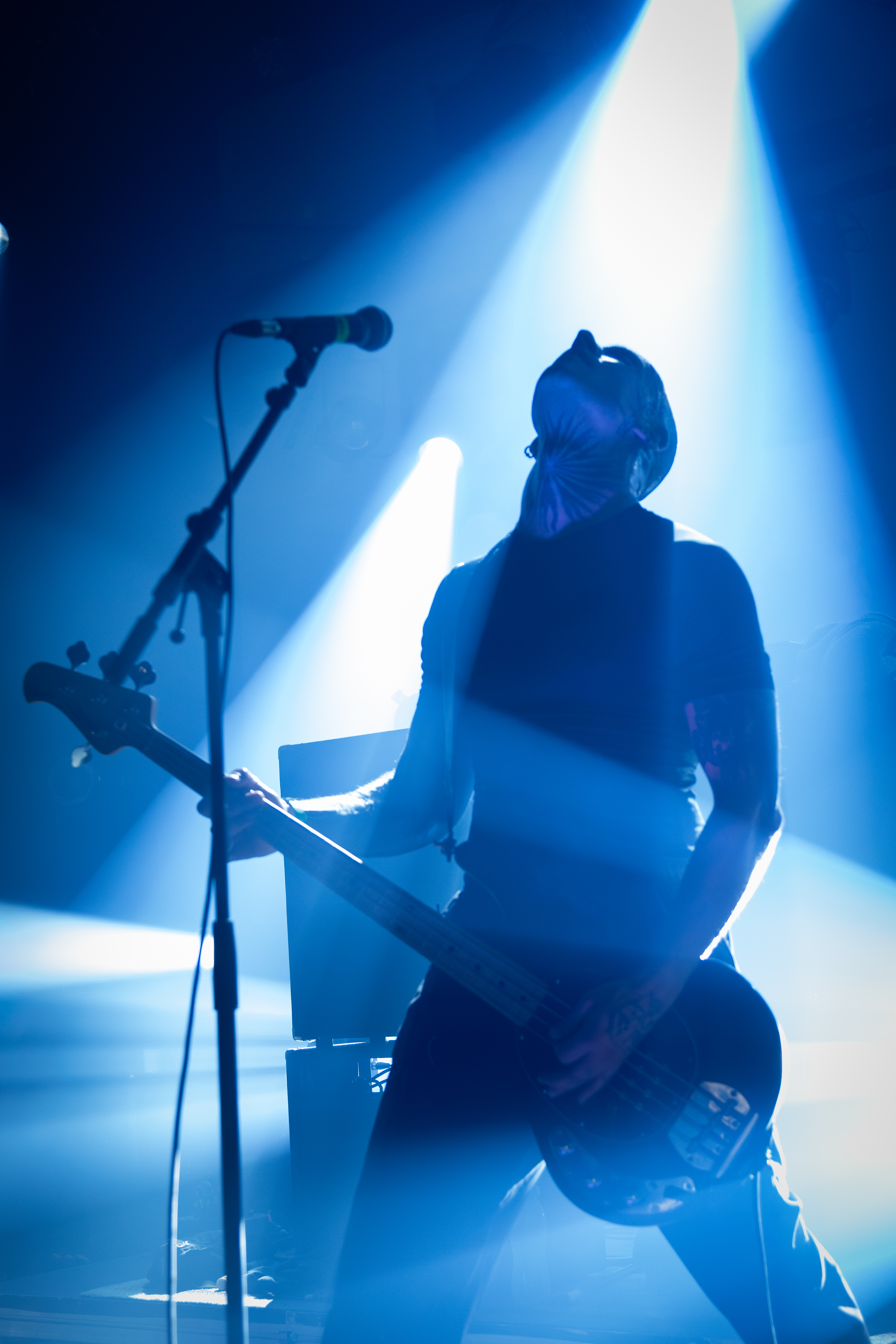 À vrai dire, la musique atmosphérique du trio est lente à démarrer en concert, et ne décolle parfois jamais. Aucune ambiance, présence ni aucun accessoire sur scène, comme de la fumée, ne vient embellir la prestation post-metal molle du groupe de la Klonosphère. Quelques rares moments de groove de basse (sur « Résilience 2021 ») et des accords puissants (parfois sortis de nulle part comme sur le nouveau titre « Fall Over ») viennent me sortir de mon ennui, mais je ne suis pas aussi pris aux tripes sur le beau « Précipice » que sur le disque. Le manque de violoncelliste, entendu seulement via des samples aujourd’hui, se fait cruellement ressentir.