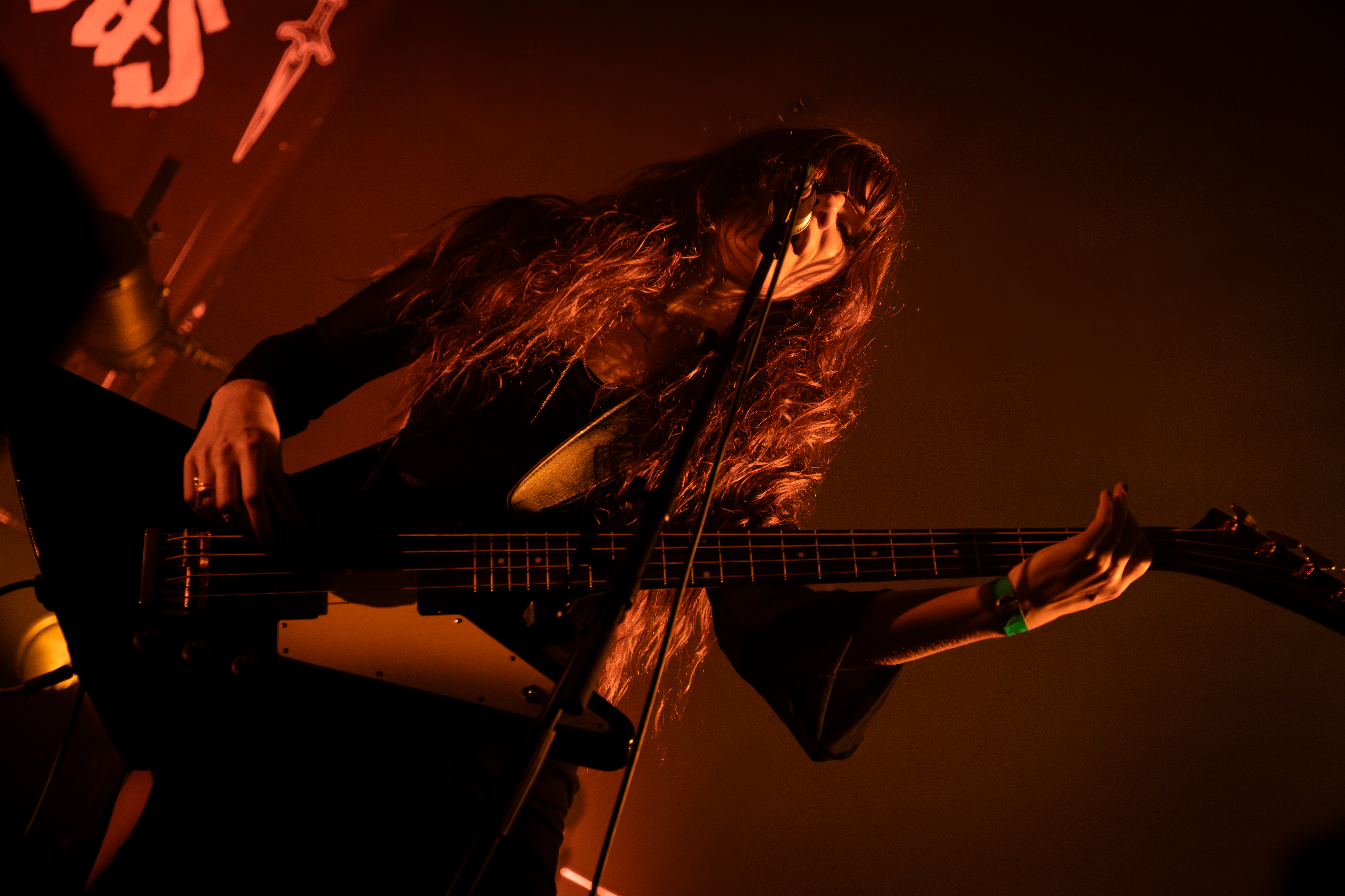 En allant de Jupiter à Pluton, nous naviguons également de Marseille à Lille. Pour rester sur le voyage, nous remontons la rivière du Nord au cœur des ténèbres de la Deûle, théâtre de noyades mystérieuses possiblement criminelles. C'est le genre de faits divers qui a pu inspirer un célèbre groupe finlandais, mais on ne verra pas de titre type « Deûle after midnight » chez ces enfants du beau doom. Le trio (encore un) joue avec les codes du style au lieu d’appliquer à la lettre le mantra « lent/lourd/macabre ». On se retrouve ainsi avec une accélération impromptue avec du blast en plein titre et un beat à la Biohazard, sur une setlist largement composée de nouvelles compositions en dehors du dernier titre « Virée nocturne ». Le synthé d’Elya Bernard s’occupe des basses impitoyables et ancre une ambiance pesante. La chanteuse faisant face au guitariste excelle aux growls comme aux chants clairs, d’une précision stupéfiante. Certainement l’un des groupes les plus innovants et captivants de cette journée.