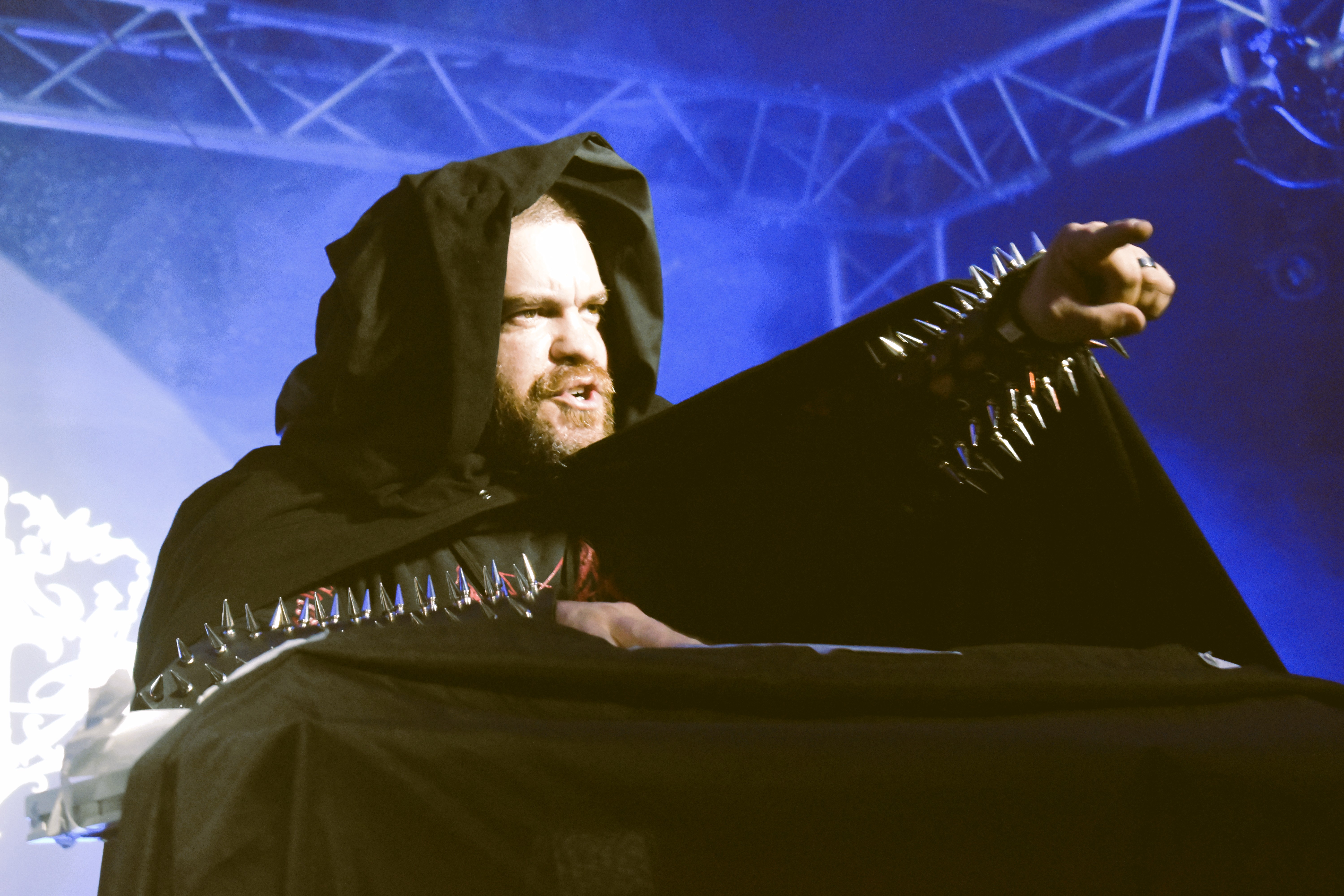 La première édition du Dark Dungeon Festival avait fait fort en accueillant à la fois Depressive Silence et Mightiest, « l'autre » groupe d'une bonne partie des membres du projet DS allemand, pour un warm-up black metal. Cette fois-ci, c'est un autre groupe d'Olli, le chanteur de Mightiest, qui vient clore la première journée, et si A Spell Enraged reste encore assimilable au dungeon synth, son registre tire quand même fort vers le shock rock et le metal gothique. Un détour par les toilettes m'apprend que le groupe ouvrira prochainement pour The Vision Bleak, et ça me semble une bonne idée. Ce soir, toutefois, la magie prend moins. Olli débarque en cosplay d'Andrew Ryan et parle, beaucoup et longuement, d'expériences ésotériques dans une ambiance très décadente-tournant de siècle.