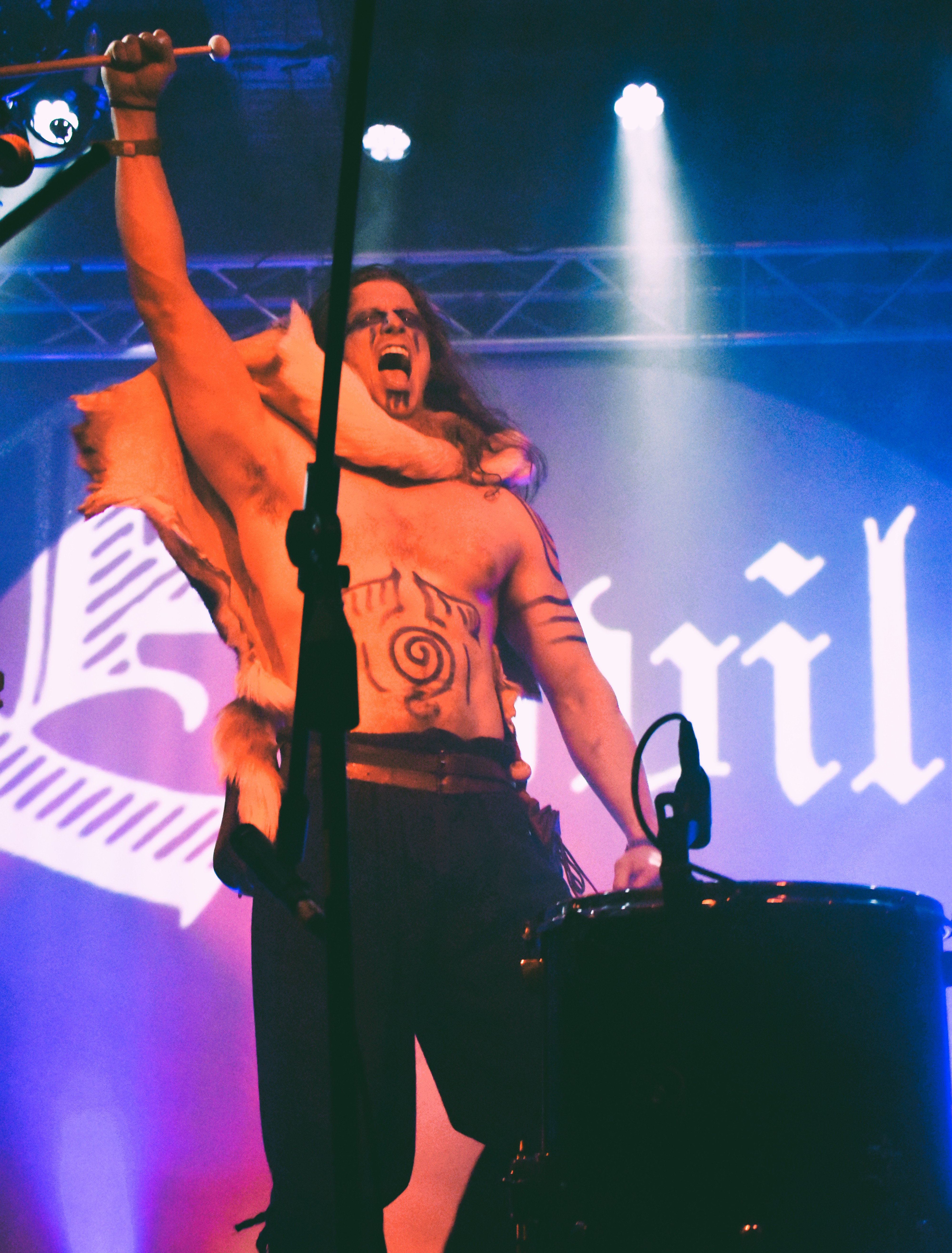 Après un tel déploiement de draconologie, difficile de rebondir. Et pourtant, Elyvilon, le dernier aventurier du Nouveau-Monde de la soirée et celui qui a pour tâche de clore le festival, y parviendra à merveille. Tout de peaux et de peintures de guerre vêtu, ce dernier avatar du champion éternel va se déchaîner sur ses touches et ses fûts, dans une prestation tenant de la danse tribale, et devant un public absolument surchauffé – j'ai bien cru que j'allais assister à mon premier mosh pit sur ce genre de musique, c'est dire.