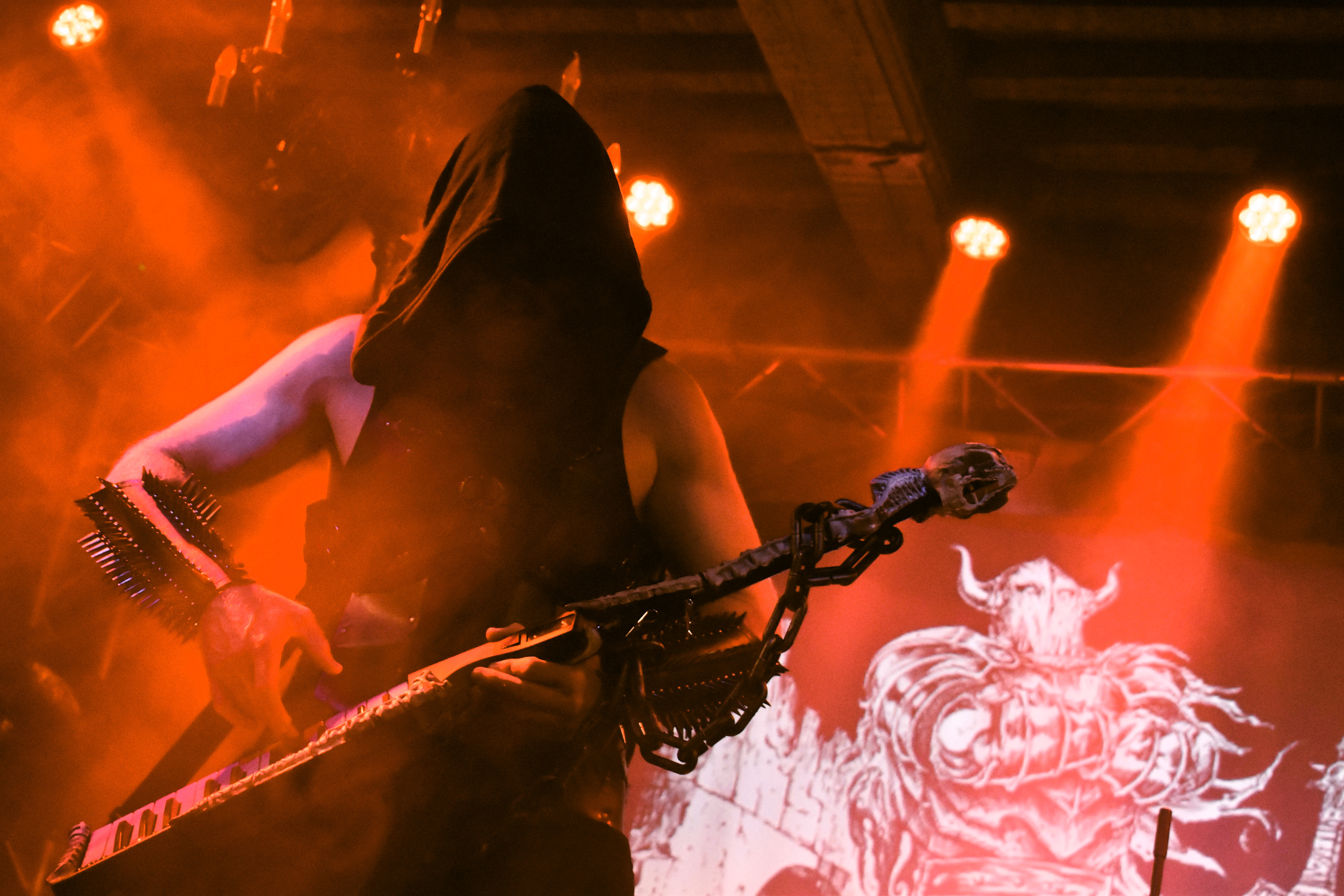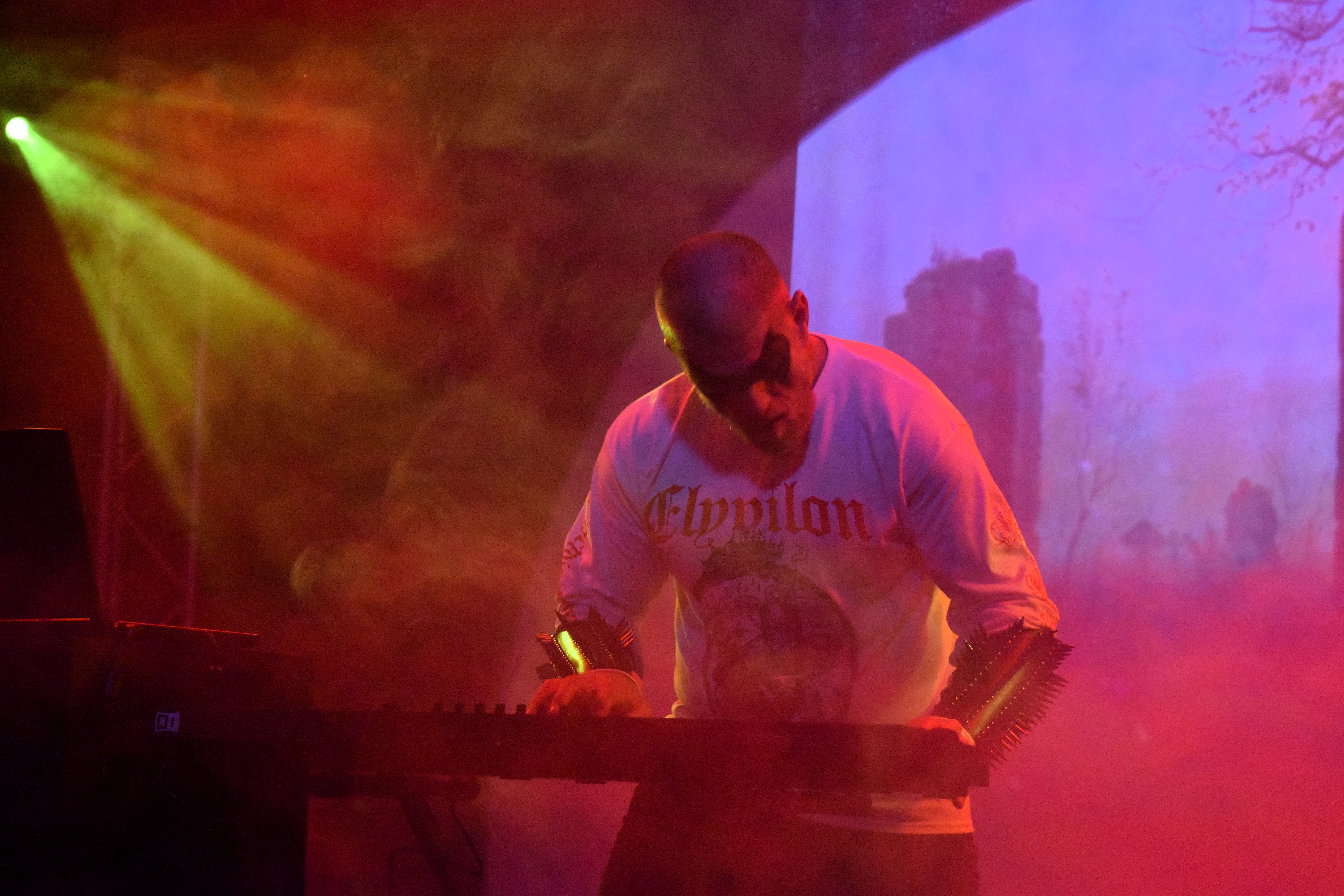 Si Elyvilon s'inspire beaucoup de légendes finlandaises – son dernier album, Versebound, évoque le Kalevala – sa musique, elle, change de peau sans prévenir. De la synth forestière déjantée, elle vire à la démonstration musclée de percussions tribales, puis s'aventure dans une darkwave saturée qui ne dépareillerait pas dans un univers cyberpunk, avant de nous offrir des passages orientalisants et carrément dansants. Impossible de résister à l'enthousiasme d'Elyvilon, qui sue sang et eau sur scène comme s'il était seul face à une horde de trolls – ce qui n'est pas loin de la vérité, mais nous restons bien intentionnés. Là où j'ai déjà vu des claviéristes jouer comme s'ils étaient en plein dans leur partie d'Age of Empires II, lui tambourine comme si sa vie en dépendait. Alors que la scène n'a tranché que depuis peu sur ce qui était pertinent pour encourager un artiste, et restait attachée à une relative retenue, cette fois, le public éructe tandis que vibre le simple vitrage de notre citadelle. « Long live dungeon synth ! », finit par proclamer Elyvilon en nous remerciant chaleureusement. Ben mon vieux, t'as pas idée. On se recroise au merch' !