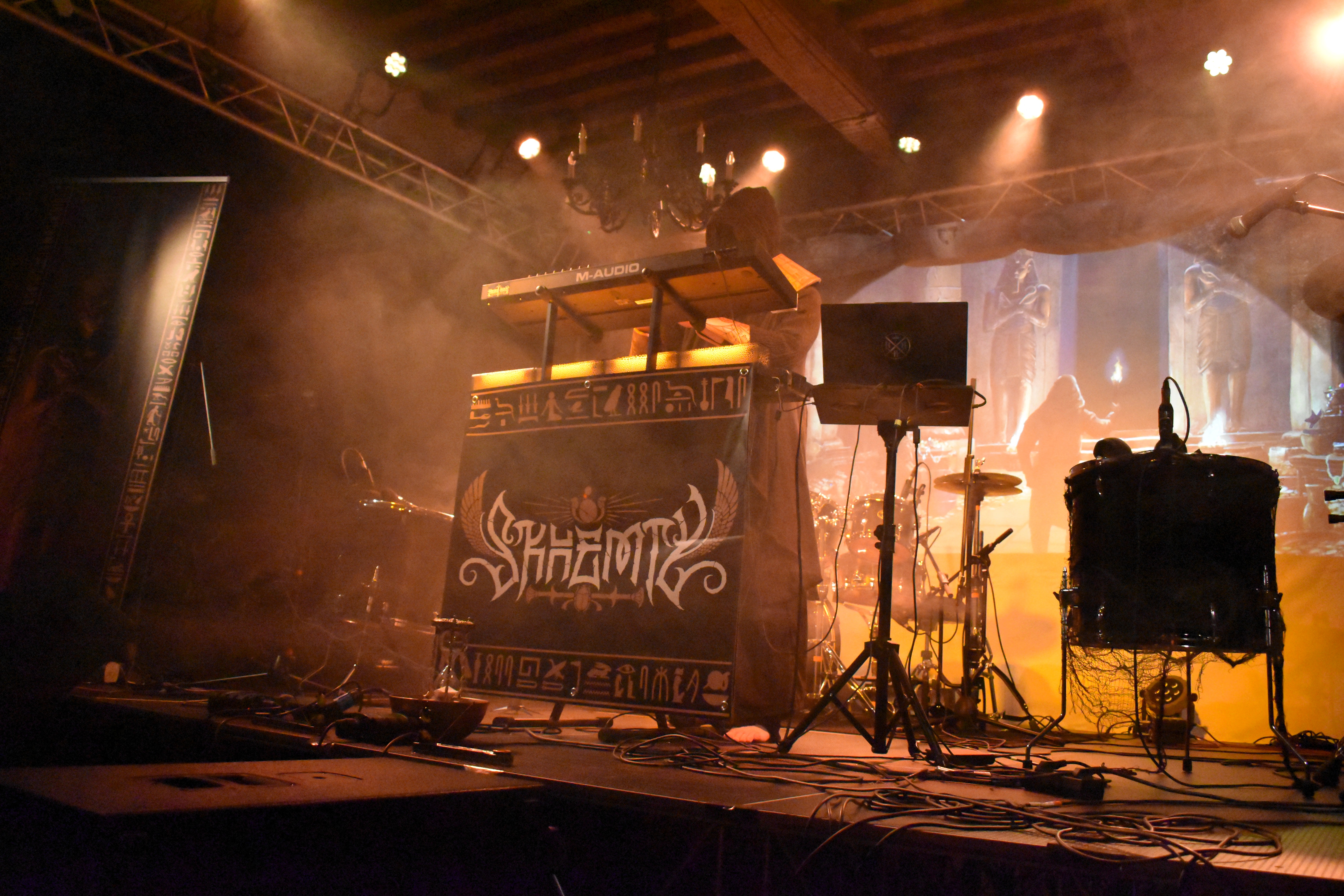 Alors que l'on vogue tous au rythme des eaux du Nil et des sonorités orientalisantes, Skhemty nous prend finalement par surprise avec deux percussionnistes et un changement de décor, et enchaîne sur quelques compositions de Balrog, autre projet de synth qu'il avait apparemment mis en pause depuis quelques années, et qui va bénéficier d'une réédition. Un concert bonus à l'affiche, en quelques sortes, qui ne manque ni de panache ni de puissance et qui obtiendra un véritable tonnerre d'applaudissements.