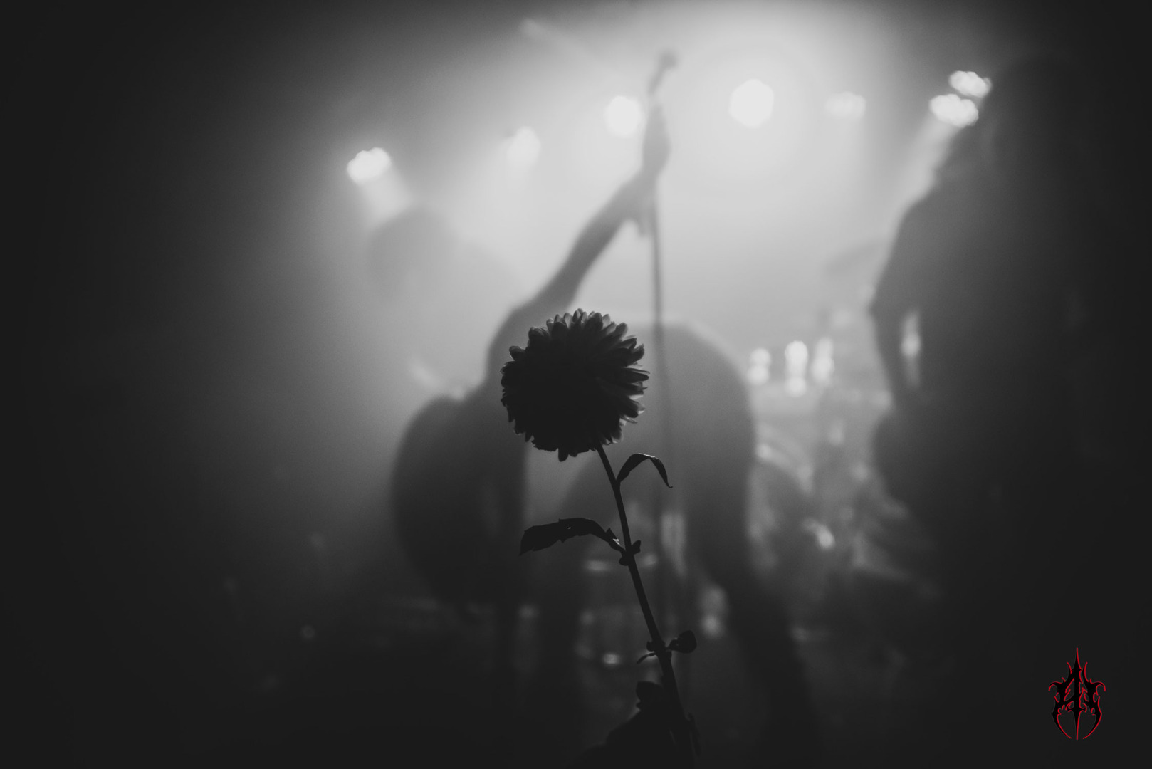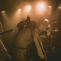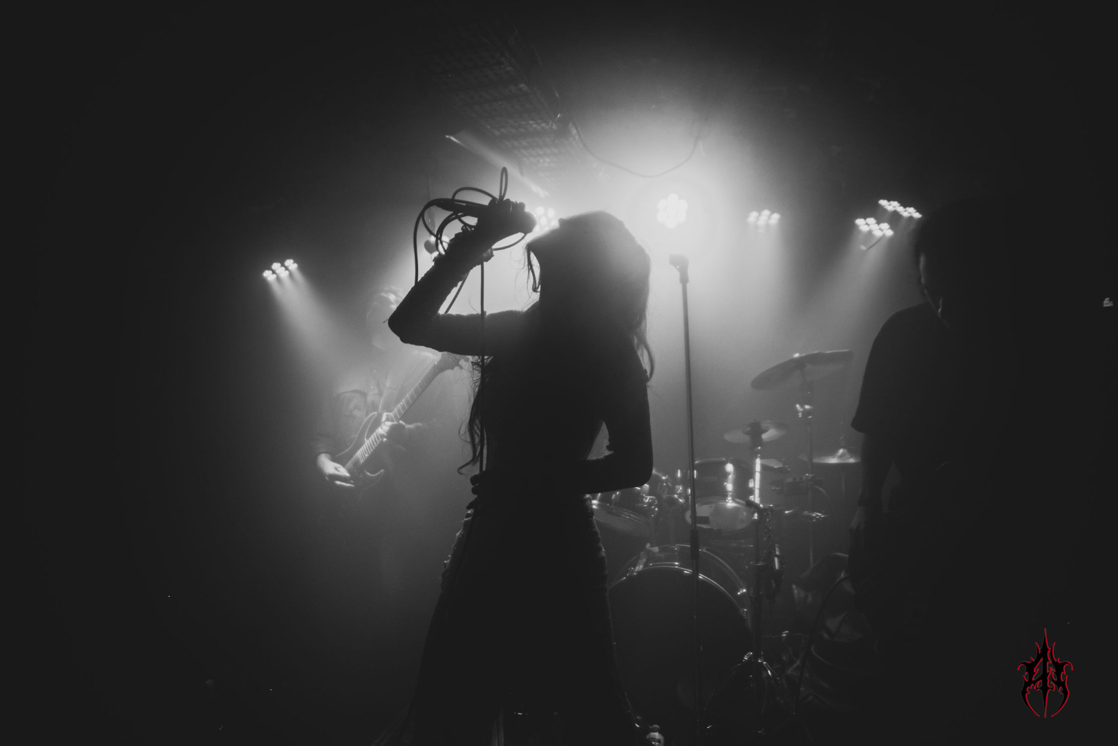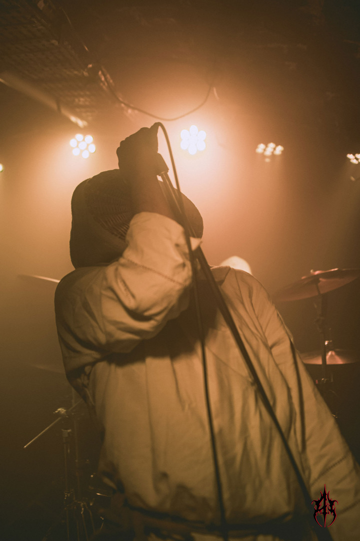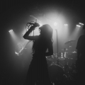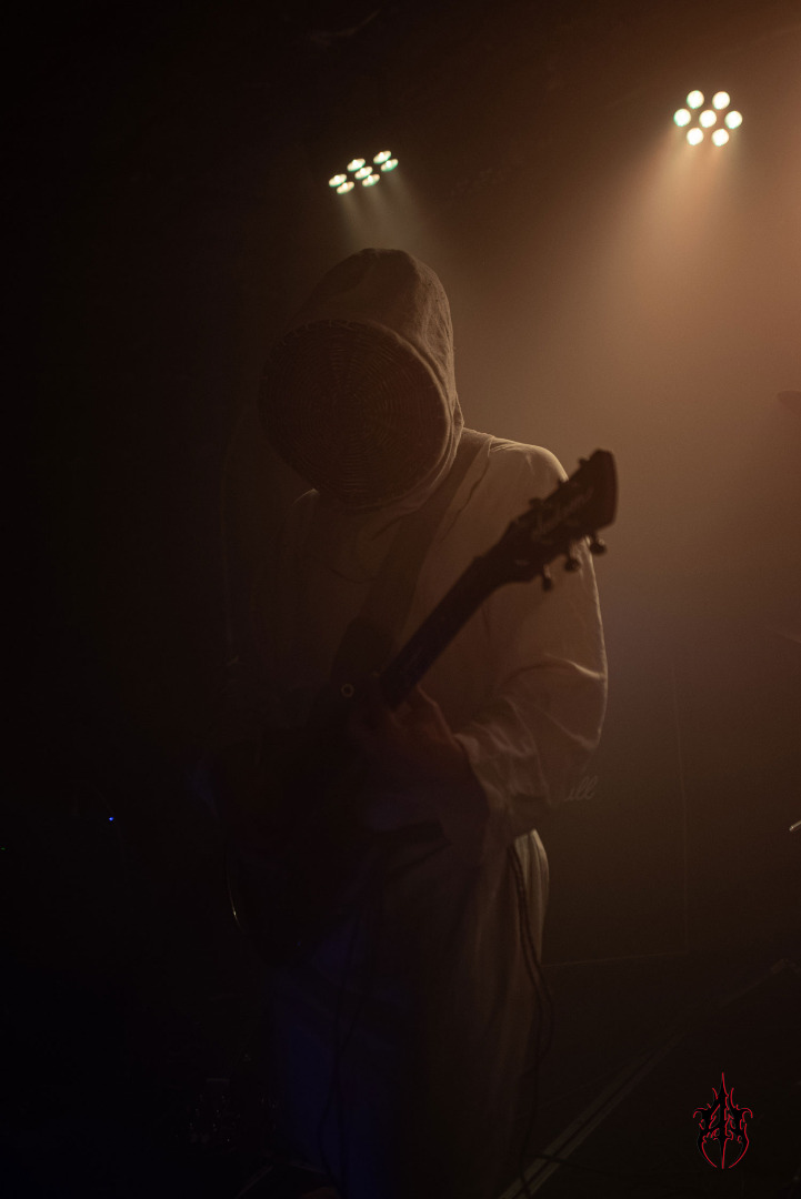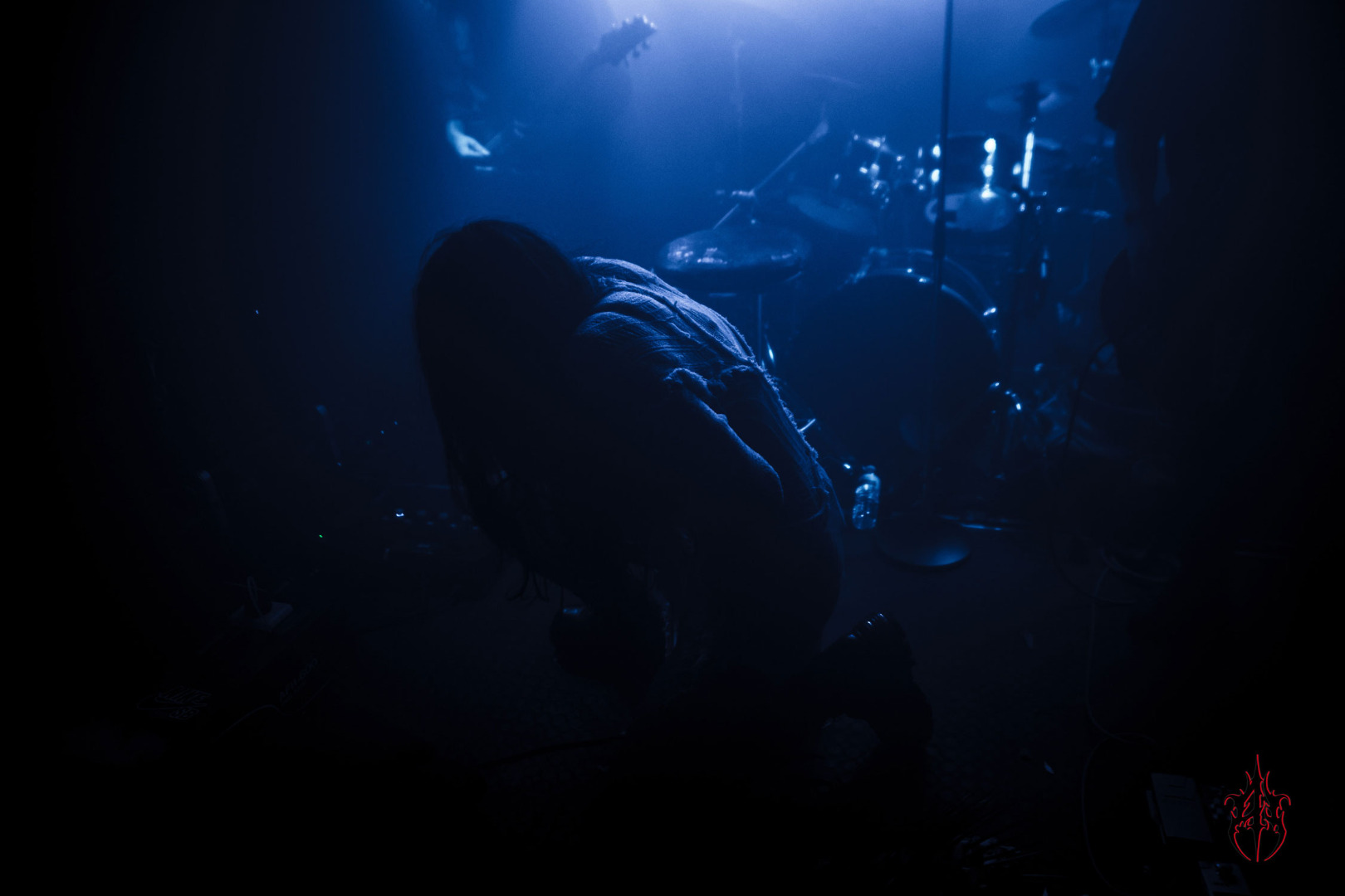 Arrivé à la fin de premier titre de Midsummer Blaze, je découvre malgré moi qu'au fond de la cave voûtée, le son est un peu flottant, cotonneux. Certes, la musique du groupe (que je découvre ce soir), à ranger dans le grand coffre plein de bazar du post-metal (avec supplément shoegaze), possède intrinséquement cet aspect contonneux et un peu distant sur les passages calmes, mais depuis le fond de la salle, le résultat est trop peu lisible. La soirée étant sold-out, le public est bien compact et je ne pourrai pas profiter pleinement de la prestation du groupe. La voix claire de Saline, la chanteuse, évoque un peu celle de Julie Christmas (même si moins sur le fil), tandis que son chant crié est moins directement référencé mais ne manque pas de coffre et de puissance. Clairement, la musique proposée par ce combo venu (en partie) de la Réunion ne manque pas de qualité, à revoir dans de meilleures conditions.