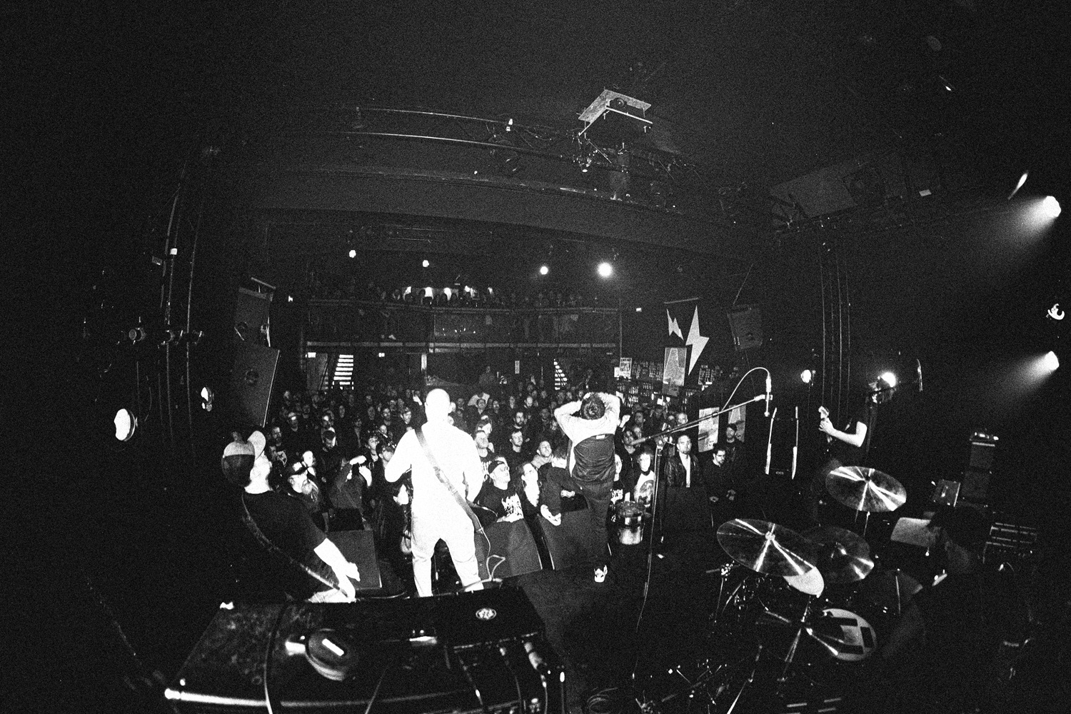 C'est le groupe que j'attendais le plus ce soir, impatient de les découvrir en live. Et pour cause, l'album Embrasser la nuit sorti l'année dernière m'avait particulièrement tapé dans l'œil, séduit par la voix cassée et à vif de Grégoire Caussèque, la camaraderie palpable à chaque chœur et les clins d'œil au post-metal de Cult of Luna. Le disque a fait son petit chemin, et quel plaisir de retrouver le groupe sur un concert totalement validé par un public conquis, prêt à en découdre sur le très direct « Paris sous les tombes ». Les rythmes bouillonnants ont retourné la salle et les Landais se sont mis le public nantais dans la poche dès le démarrage dynamique avec « L'Appel de la nuit », où l'écho des « aou » chers au chanteur ont aussi résonné en nous. Le frontman mouille le maillot, parcourant chaque coin de la scène comme un rugbyman à l'échauffement prêt à nous plaquer au sol. Impliqué pour nous prendre aux tripes comme le ferait Amenra dans des prestations écorchées et lourdes, le Montois chante aussi à genoux face au sol, littéralement à terre, et sort les outils pour frapper au marteau sur une bouteille de gaz en relais du son métallique de la cymbale ride.
