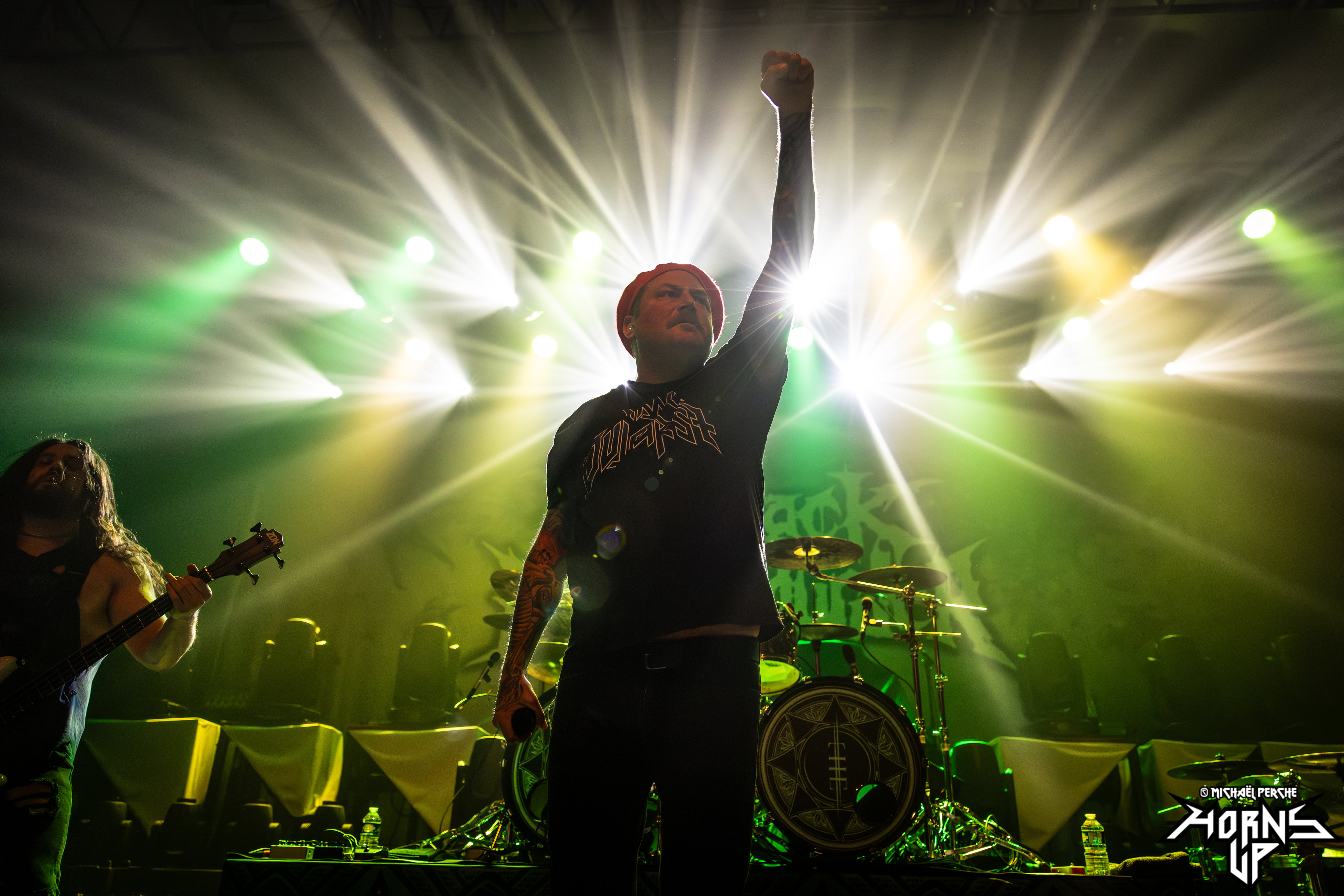 En plus d'être bons sur scène, et d'être accompagnés de lights de qualité, le groupe a eu le bon goût de nous offrir une cover de « Black Tears » de Edge of Sanity, issu de l'album Purgatory Afterglow sorti en 94. C'était assez fou de voir à quel point ce titre s'est bien inséré dans la setlist du groupe, en dépit des différences musicales évidentes entre HSB et les Suédois. Quoi qu'il en soit, c'est après une grosse heure de bagarre que les Allemands ont quitté la scène devant un public conquis. Au final, on arrive juste à regretter la faible occupation de l'Elysée Montmartre, ce soir, qui a nécessairement impacté l'ambiance. Pour le reste, c'était ultra solide ; et vive le mélodeath, tiens !
